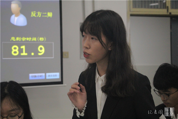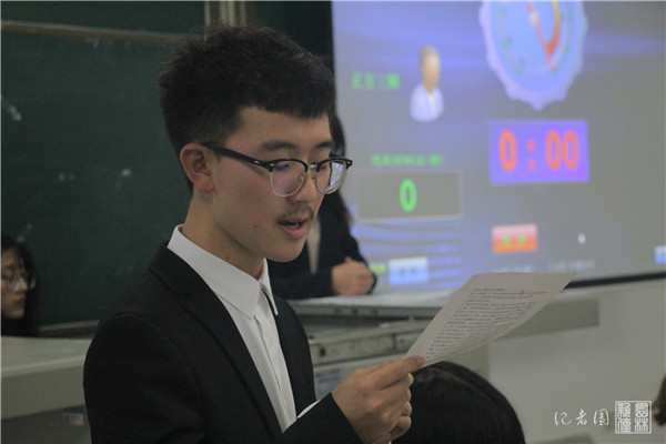本次园林杯辩论赛的第三组与第五组率先进行了季军之席的争夺。双方就辩题“宅文化让生活更颓废还是更精彩”展开辩论。正方第三组持“宅文化让生活更精彩”的观点,反方第五组持“宅文化让生活更颓废”的观点,辩手双方你来我往,侃侃而谈。双方从宅文化的定义出发,探求宅文化对人生的利弊,经由开立论陈词、盘问、自由辩论和总结陈词四个环节的激战后,由评委进行公正评判并给予出中肯建议。最终,反方赢得季军,正方辩手林思雨获得“最佳辩手”称号。