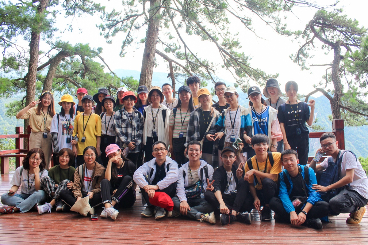 除了庐山植物园的路线之外,实习期间,园林师生还分别前往庐山东、西两条游线开展研学。8月30日,众人循蜿蜒小路拾级而上,登陡峭挺拔的五老峰,只见危岩削立,天高地迥。学生早已精疲力竭,倚着巨石喘着粗气,带队教师们虽也已经汗流浃背,嗓音沙哑,却仍坚持着讲授植物,神情专注,不见丝毫怠慢。“姚老师的体力太好了,我们都爬不动了,他还在前面健步如飞,不停告诉我们路边的植物叫什么名字。”来自园林1702班的邓文萱感叹道。