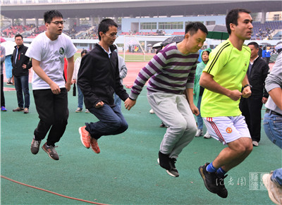 11月1日上午9:00,男子组师生融合大河之舞比赛于第二运动场北侧举行。十大网投正规官网王永健、秦仁强、杜克兵、罗杰、阿卜力克木·吾卜力和何寿鹏6名老师,王一磊、唐逸飞、董新宇、吴涵、贺世伟和陆闵6名同学参加了此次比赛。