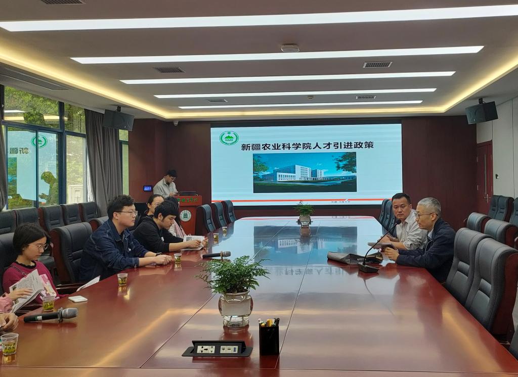2024年4月11日上午,新疆农业科学院人才引进宣讲会在澳门十大网投正规官网平台北楼219会议室举行(以下简称新疆农科院)。新疆农科院经济作物研究所所长孔庆平、园艺作物研究所副所长马凯、澳门十大网投正规官网平台辅导员肖晗与十大网投正规官网博士研究生共同参与。