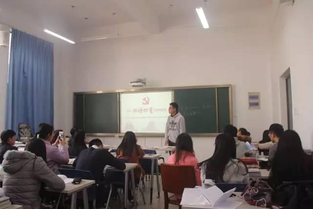 主持人邓钇平向全体党员介绍了会议的背景与目的后,全体党员进行了入党誓词宣誓,活动正式开始。主持人向大家介绍了十八届六中全会的背景资料,并进行了相关的知识问答环节,帮助党支部成员更好的学习理论知识。