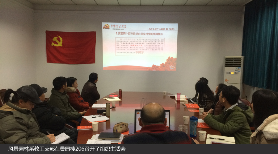 12月24日下午,十大网投正规官网风景园林系教工支部在景园楼206召开了组织生活会。支部联系人、校后勤集团党委书记、总经理张金洲、院党委书记张宏荣、风景园林系教工党支部13位党员参加了会议。组织生活会由支部书记、副院长张斌主持。