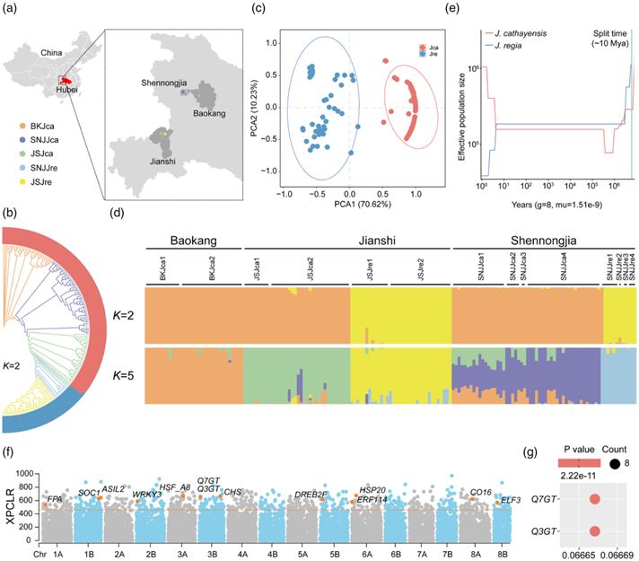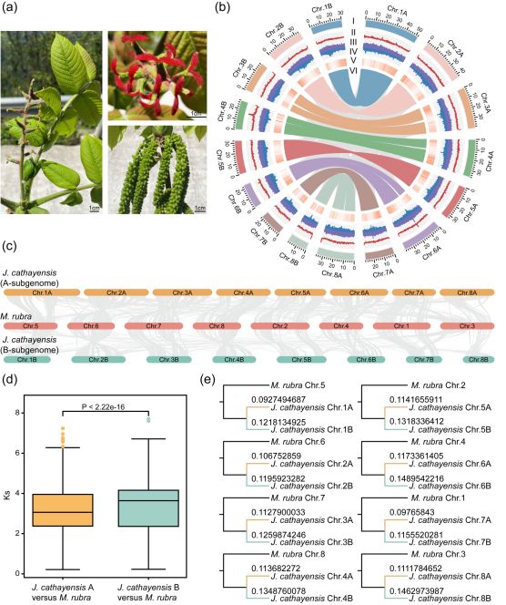 近日,学院林学系王滑副教授团队和中国林业科学研究院林业研究所裴东研究员团队合作在《The Plant Journal》在线发表了题为“Genome assembly and comparative analysis reveal the imbalanced subgenomes divergence and evolutionary history of Juglans cathayensis”的研究论文。该研究揭示了中国核桃(野核桃)亚基因组分化的遗传机制,发现长末端重复反转录转座子的不平衡插入驱动其基因组扩张与亚基因组差异,其早熟性和抗逆性等特征与类黄酮代谢通路及 SOC1 基因的独特缺失密切相关。