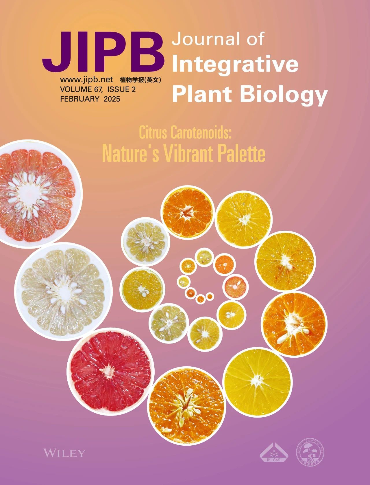 JIPB 2025年67卷第2期封面文章来自澳门十大网投正规官网平台果蔬园艺作物种质创新与利用全国重点实验室邓秀新院士团队题为“A novel C2H2-type zinc-finger transcription factor, CitZAT4, regulates ethylene-induced orange coloration in Satsuma mandarin flavedo (Citrus unshiu Marc.)”的研究论文(https://doi.org/10.1111/jipb.13778),该研究解析了一个乙烯诱导的C2H2型转录因子CitZAT4调控乙烯诱导温州蜜柑果皮着橙色的分子机制,为提升柑橘果实色泽品质提供了重要依据。
