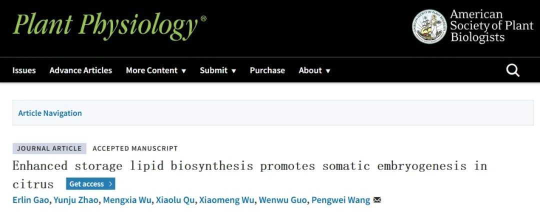 近日,澳门十大网投正规官网平台、果蔬园艺作物种质创新与利用全国重点实验室王鹏蔚教授团队在Plant Physiology期刊发表题为“Enhanced storage lipid biosynthesis promotes somatic embryogenesis in citrus”的研究论文,揭示了增强柑橘胚性愈伤脂质合成可以促进体细胞胚发生的分子机制。