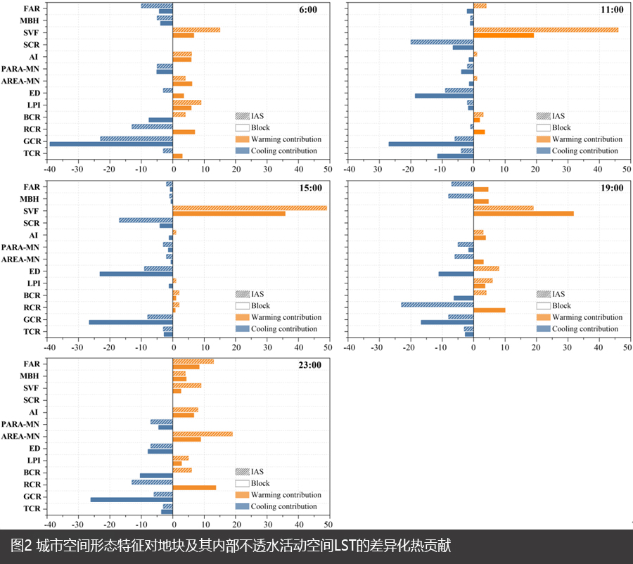 图2 城市空间形态特征对地块及其内部不透水活动空间LST的差异化热贡献