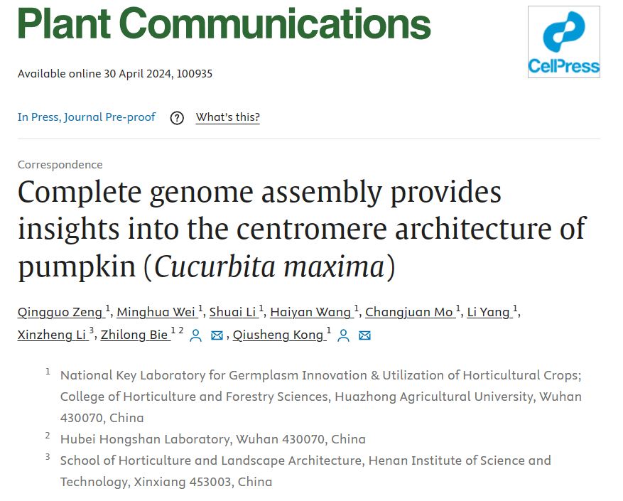 近日,澳门十大网投正规官网平台果蔬园艺作物种质创新与利用全国重点实验室、澳门十大网投正规官网平台孔秋生教授和别之龙教授团队在Plant Communications在线发表了题为“Complete genome assembly provides insights into centromere architecture of pumpkin (Cucurbita maxima)”的通讯论文。该研究利用HiFi、ONT三代测序数据及Hi-C技术,成功组装了第一个端粒到端粒无间隙(T2T and gap-free)的南瓜完整基因组,并基于该基因组剖析了南瓜中独特的着丝粒结构与特征。