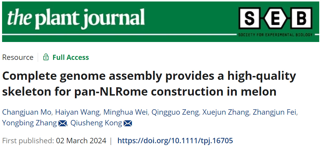 近日,澳门十大网投正规官网平台果蔬园艺作物种质创新与利用全国重点实验室、澳门十大网投正规官网平台孔秋生教授团队在the plant journal在线发表了题为“Complete genome assembly provides a high-quality skeleton for pan-NLRome construction in melon”的研究论文。该研究从头组装了第一个甜瓜T2T和gap-free水平的完整基因组,并首次构建了甜瓜的泛NLR组(pan-NLRome)。该研究不仅为解析甜瓜基因组结构和抗病基因NLR的多样性提供了重要资源,也为甜瓜泛基因组构建提供了高质量的参考骨架。