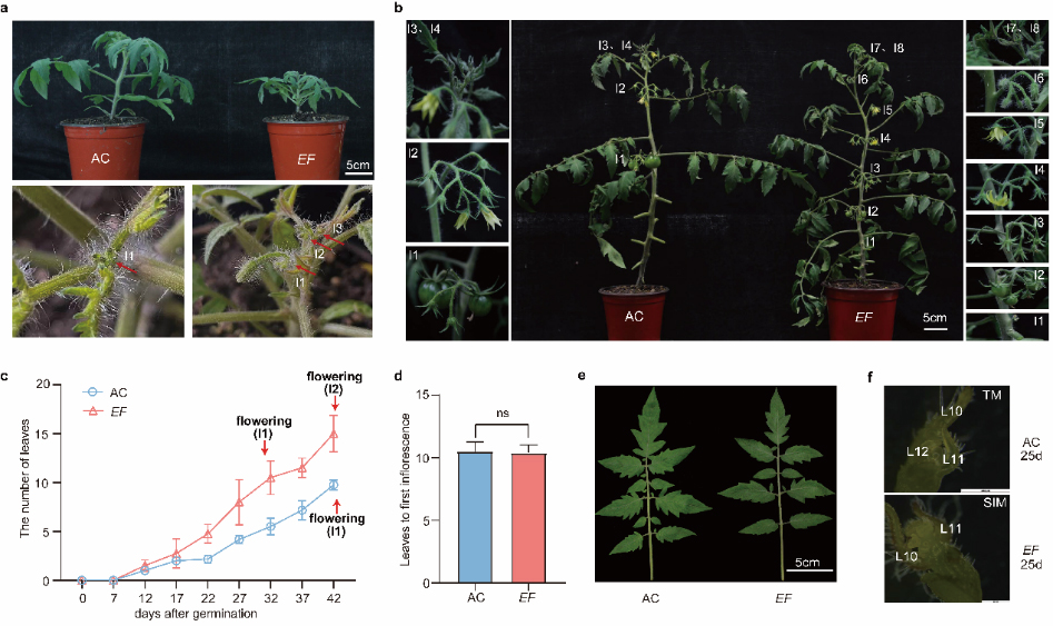 番茄是全球最重要的蔬菜作物之一,也是植物果实发育研究的模式植物。开花是植物获得果实和种子的前提,开花时间是影响作物生育期和产量等重要农艺性状的主要因素之一,是植物科学研究的重点方向,培育早熟、高产的品种一直番茄育种的重要目标。因此,开展番茄开花时间的相关研究,对缩短生长周期、均衡优化产业需求、提高番茄产量具有重大的应用价值和意义。