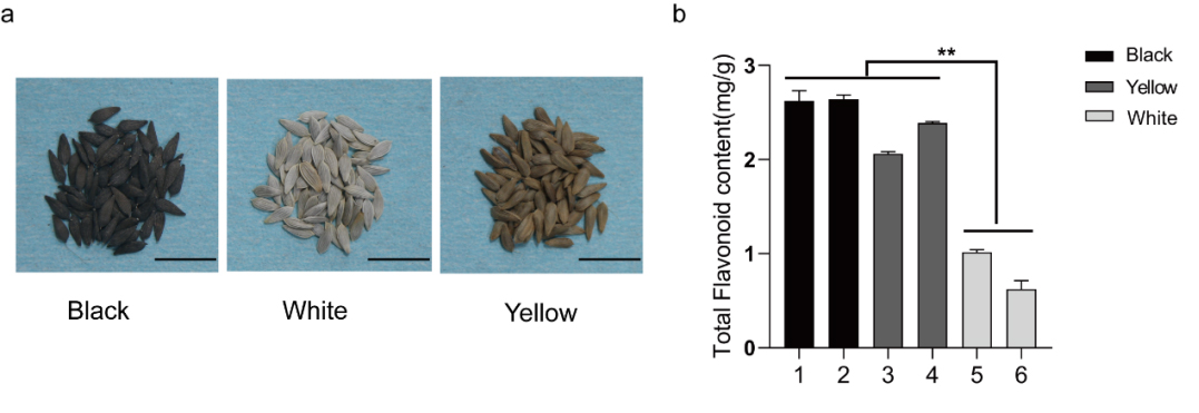 图1. 莴苣的种子颜色种类及种皮黄酮含量