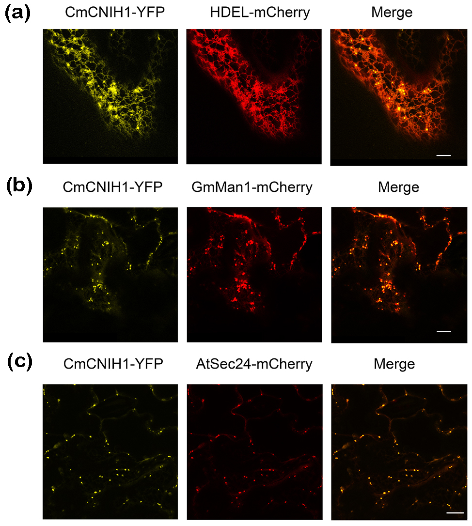 图1 CmCNIH1定位于内质网、高尔基体、内质网输出位点