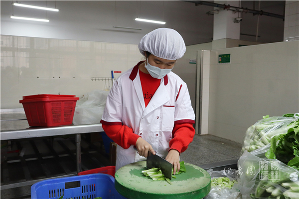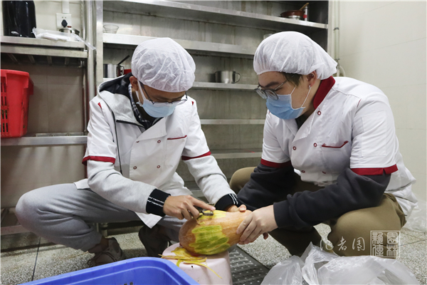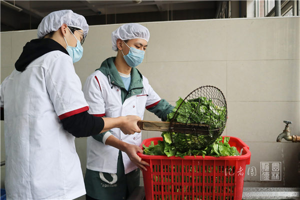 活动伊始,同学们于荟园一楼大厅集合,在食堂和生保部工作人员的带领下前往后厨。同学们先在副食库换上食堂工作服,并戴好工作帽,而后五人一组分别进入相应加工区。食堂方面相关负责人雷志鸣分别给四个小组安排了相应的帮厨任务,如给青椒茄子去蒂、给冬瓜南瓜去皮、打鸡蛋和剥洋葱等。完成任务后,大家在素菜加工区集合,在后厨工作人员和负责人的指导下,轮流体验洗菜和切菜等项目。林学2001班的顾梦怡表示,这次活动既有趣又劳累,特别是用大铁勺捞清洗池里的青菜那一项。她说:“这次活动让我们真切体会到了食堂叔叔阿姨的辛苦,我们以后一定要更加珍惜粮食。”