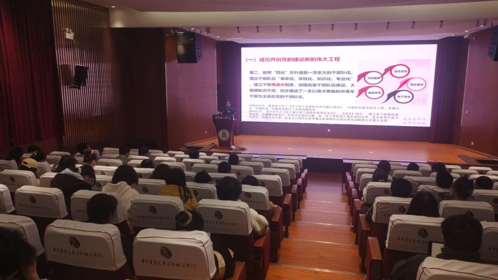 11月24日中午12:20,澳门十大网投正规官网平台党建理论实践部组织学院研究生、本科生一同开展第80期党课第三次线下讲座学习活动。本次线下党课围绕“中国共产党新时代党的建设伟大工程”这一主题,邀请院党委副书记蔡江为党课学员们授课。