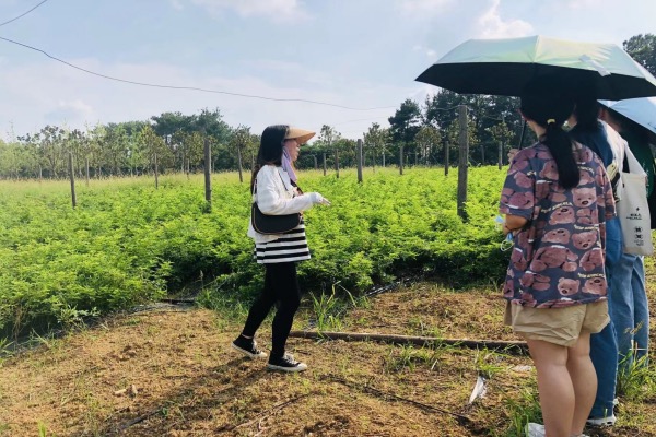 离开婚庆园后,实践团参观了花博园的月季砧木培育基地。伍甜耐心讲解了高杆蔷薇的生长特点和移栽工序,重点介绍了我校宁国贵教授实验室研究的优良月季砧木的产品竞争优势及在花博园的生长培育现状。据了解,该砧木培育出的月季具有抗病、抗热且无刺的特点。指导老师宁国贵表示,正是因为这些特点,使得高杆蔷薇能够很好地适应南方地区高温多雨的气候,加之荆门市是最大的园艺产品集散地,在荆门种植高杆蔷薇能极大地发挥其产品竞争优势。
