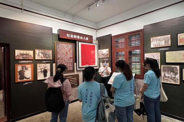 13日,队员们前往八办旧址进行调研,回顾了饶国模女士的一生。通过讲解员的介绍,团队成员们了解到,饶国模女士是一位拥有殷实资产的妇女、一位革命烈士的胞妹、一位拥有先进思想的知识分子,“不弃樗材附骥尾”是她的革命理想。她倾尽自己的所有资产和心血协助南方局开展革命工作,拿出积蓄为新建八路军驻重庆办事处划出土地、购买建材及雇用工匠。她还广泛发动妇女群众缝制背心慰劳前方抗敌将士,创办战地救护训练班,并募捐支援八路军,邓小平同志因此称赞她为“革命的妈妈”。