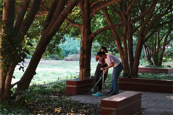 参加本次劳动的同学均准时到达。活动开始后,参与学生各自成组,对相应区域进行了清扫枯枝落叶和清除垃圾等维护工作,以极高的效率和极佳的质量完成了本次校园卫生打扫活动。