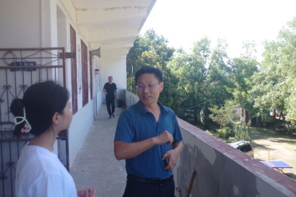 7月11日上午九点,鄂州市梁子湖区教育局詹副局长莅临实践团住处胡进小学进行关照问候工作。在胡进小学柯校长陪同下詹副局长参观了胡进小学校园和实践队员宿舍,柯校长及实践团负责人对夏令营教学安排等内容作出简要介绍。