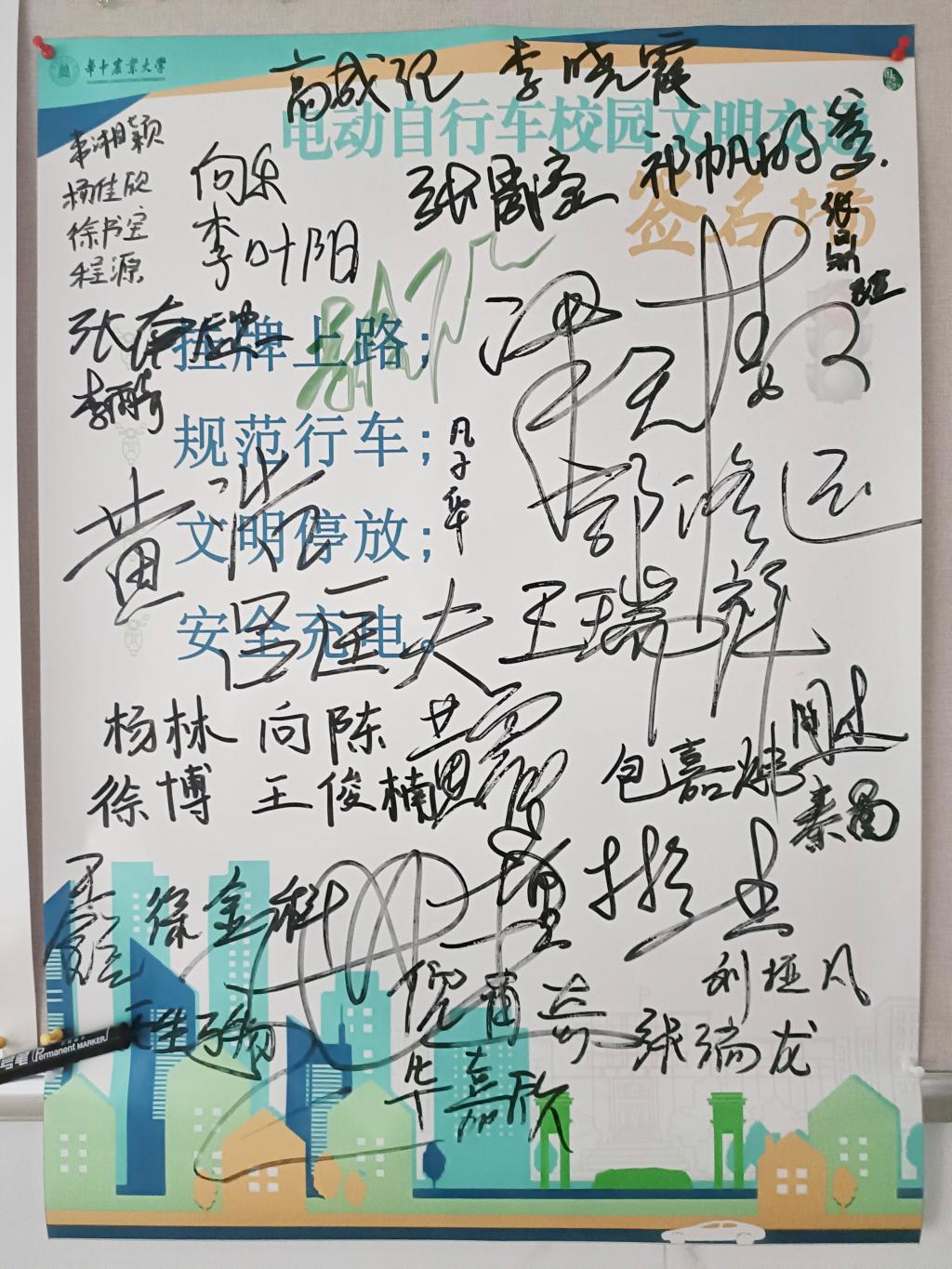 十大网投正规官网组织各个班级开展主题班会,观看《电动自行车爆炸起火警示录》《电动自行车交通事故警示录》、学习电动自行车消防安全知识,交流讨论关于电动车安全的认识体会,开展了“挂牌上路、文明行驶、规范停放、安全充电” 签名活动。每位同学签订了文明交通承诺书。拥有电动车的同学们更是都在签名墙上留下了自己的姓名,承诺遵法守规,文明出行。
