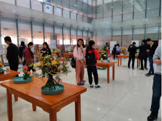 中午12时,同学们陆续来到展厅,自觉保持安静有序。参展作品类型有以“秋日暖阳”为题的中国传统插花,和以“花舞青春”为名的现代花艺(架构式螺旋手捧花束),分别来自南京农业大学、长江大学、西北农林科技大学、安徽农业大学、澳门十大网投正规官网平台等多个高校,其中两个特等奖作品分别来自南京农业大学和长江大学。展出的作品各有特色、各具风格,或秀丽,或典雅,从细节处展现出花艺的美感。现场展示的众多花艺作品,都有简单的介绍和描述,方便大家学习和了解。整齐摆放的花束、鲜艳美丽的花朵、精致精巧的造型,让每位学子不禁驻足观赏。同学们沉浸在作品的意境当中,细心品味和感受。