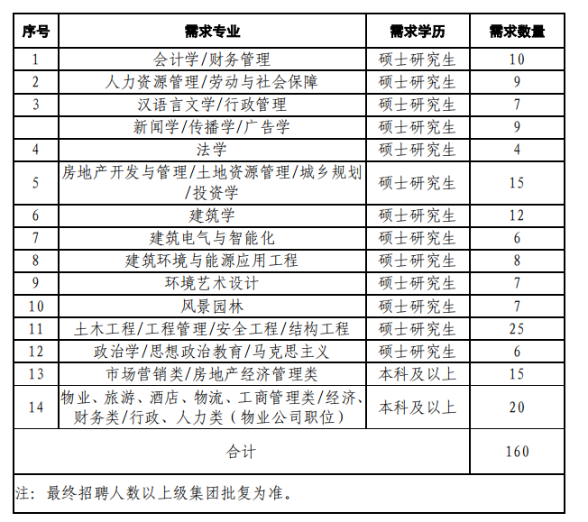 经营管理岗:5人,一本及以上,市场营销、工程管理、园林等相关专业