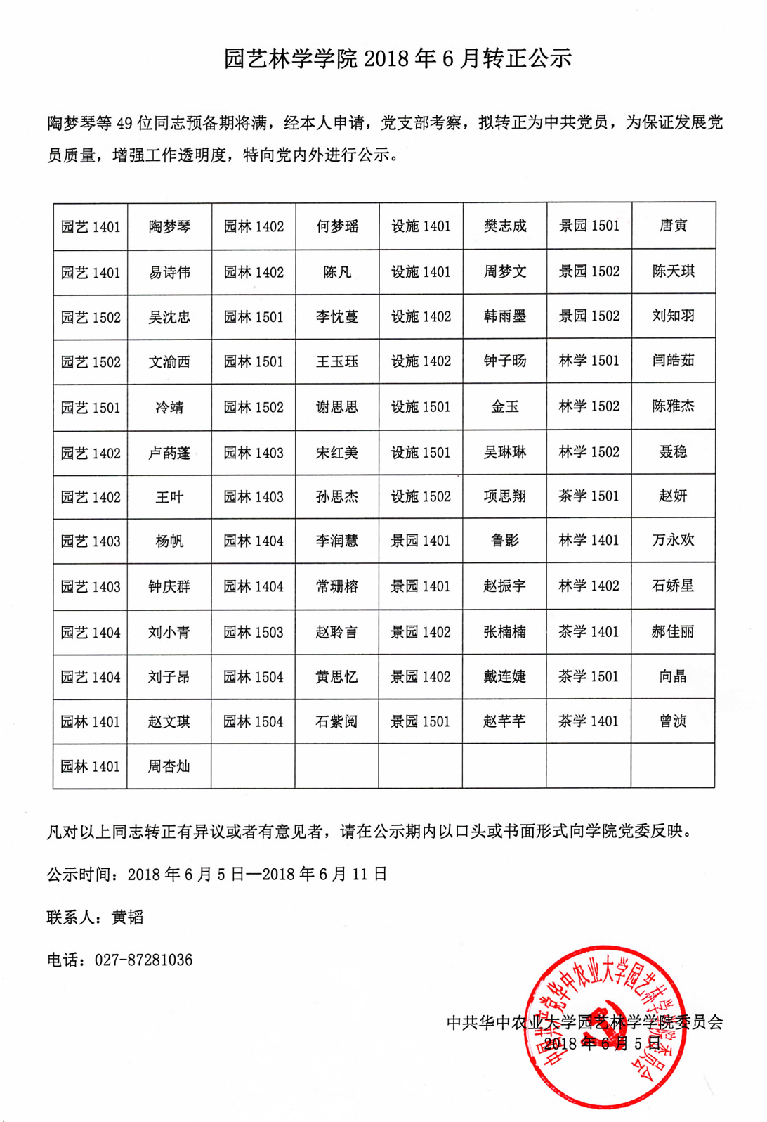 澳门十大网投正规官网平台2018年6月本科生预备党员转正公示