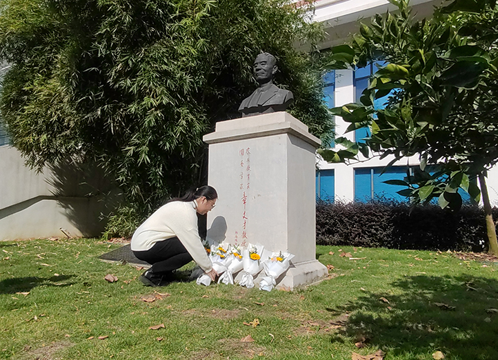 随后,获奖学生现场向章文才先生铜像献花致敬,李国怀教授做总结发言。他回顾了章文才先生的一生,强调章先生的教学十分具有前瞻性,注重理论联系实际,将毕生才华奉献给了园艺事业和高教事业。李教授提出同学们应多学习,多思考,多领悟,发扬园林学子的优良传统,将对章文才先生的敬仰化作勤奋学习的精神动力,拼搏不息,奋斗不止。