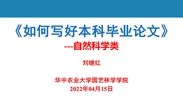 下午两点半,刘继红教授通过长江雨课堂,为2018级园艺、设施专业同学讲解毕业论文的写作要点。他从本科毕业论文的评议要素出发,科学性、首创性、逻辑性三个角度为同学们介绍科技论文的写作方式,强调实验记录可读、可查、可见、可重复的重要性。此外,他还希望同学们在思想上能够高度重视本科毕业论文,遵守学术道德,认真完成论文写作。