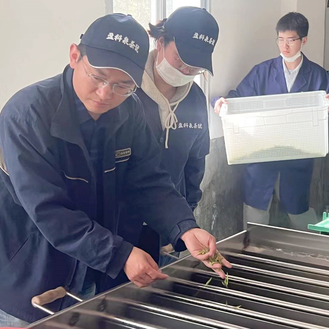 中国农技协江西宜丰茶叶科技小院由十大网投正规官网茶学系与江西盈科泉茶业有限公司共建,此次入驻团队由21级茶学硕士班隋梦圆、宁瑶瑶、江广贤和茶学1802班于昊男组成。两个月时间里,黄友谊教授带领团队成员重点推动江西盈科泉茶业有限公司春茶的提档升级。团队根据当地鲜叶的质量和特征,确定了黄金茶、松针绿茶、毛峰、红茶、珠兰花茶等茶产品的加工工艺,并通过感官审评及再加工改进毛茶品质。黄垦镇院前九天茶厂欧阳厂长表示,黄友谊教授的指导和团队成员们的帮助大大提高了今年春茶的质量,提升了茶厂工人的制茶水平。