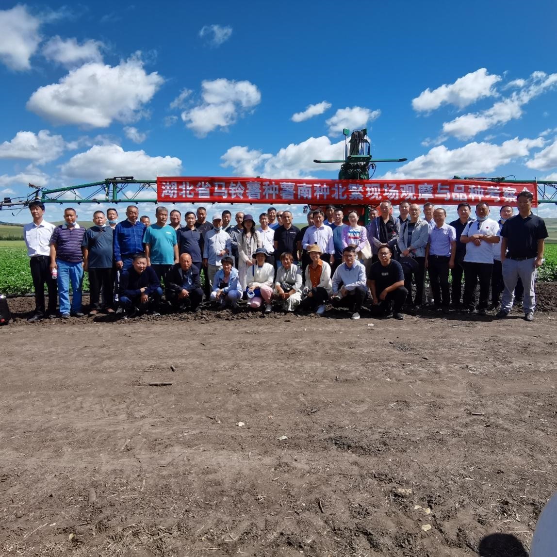 2022年8月8日至11日,由湖北省马铃薯产业技术体系主办,武汉凯瑞志合农业有限公司承办的“湖北省马铃薯种薯南种北繁基地现场观摩与品种考察会”在内蒙古呼伦贝尔召开。湖北省马铃薯产业技术体系首席科学家宋波涛教授、湖北省农业技术推广总站柴婷婷科长、襄阳市农业科学院党委书记李力、国家马铃薯产业技术体系襄阳试验站站长王四清研究员、宜昌市农业技术推广中心副主任邓红军、恩施市农业技术推广中心李求文研究员、荆州市农业科学院梁红艳高级农艺师、云梦县农业农村局副局长倪三毛等湖北省马铃薯产业技术体系各单位专家及代表,湖北省各马铃薯主产县(市、区)农业农村局分管领导、农技中心负责人及相关专家、新型市场经营主体及种植大户共50余人参加会议。