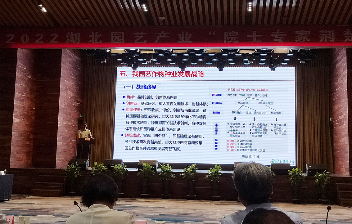 2022年8月22日上午,由邓秀新院士主持的中国工程院战略研究与咨询项目子课题“经济作物新品种创制与产业发展战略研究”研讨咨询会在湖北省宜昌市长阳土家族自治县顺利召开。会议邀请中国农业科学院方智远院士、沈阳农业大学李天来院士、湖南农业大学邹学校院士、浙江大学喻景权院士、中国农业科学院张友军研究员等15名专家组成专家组。湖北省政协副主席、民革湖北省委会主席王红玲,我校副校长、党委副书记姚江林,湖北省农业农村厅、湖北省农业科学院、宜昌市委和长阳土家族自治县县委等单位相关领导应邀出席会议。