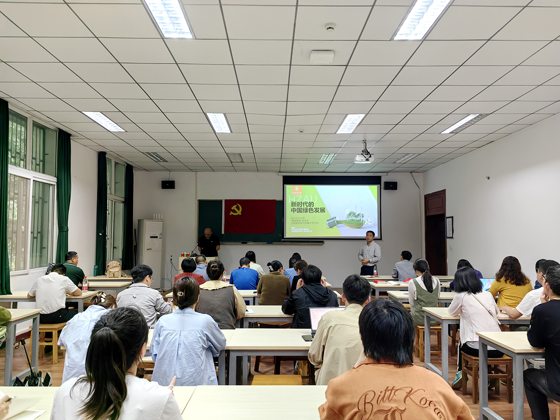 在决策部署与成就方面,张斌强调,优化国土空间开发保护格局,强化生态系统保护修复,推动重点区域绿色发展,建设生态宜居美丽家园是构建形成绿色空间格局的重要举措。“无论是宜居城市、韧性城市和智慧城市,都强调我们要尊重自然、顺应自然、保护自然,依托现有的山水骨架,营建和自然融合的城市。”随后,张斌结合近年来我校在绿色发展中的切实行动和社会贡献,例如,张启发院士“绿色超级稻”“双水双绿”的科学研究,水产学院“零排放”的绿色高效循环养殖技术、绿色校园建设示例等,认为绿色发展要和专业实践相结合,以促进生产结构调整,生活方式转变。