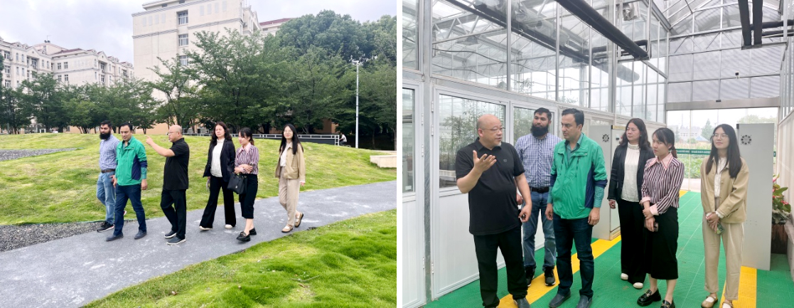 景观团队陪同巴基斯坦教授参观校园景观及花卉实践基地