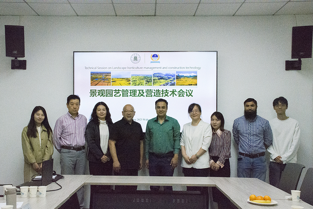 会上,张斌教授首先欢迎了Adnan Younis教授的到来,提出了对本次开展中巴合作交流的希冀。王玏副教授介绍了中巴园艺研究与示范中心(CPHRDC)景观园艺管理及营造技术团队的主要研究成果和实践项目,提出在景观园艺营造方法和技术创新方面开展多方向合作建议。Adnan Younis教授介绍了巴基斯坦费萨拉巴德农业大学的相关学科发展概况、主要研究成果、实践项目以及期望的合作要点。通过深入探讨,双方在寻找共同思想和共同要求的基础上达成共识,未来将围绕农业科技园规划设计、观赏植物资源利用与创新、景观园艺实践、农业文化遗产保护与利用等方面开展人才培养、国际会议、联合研究等工作,深入推进中巴国际交流与合作。