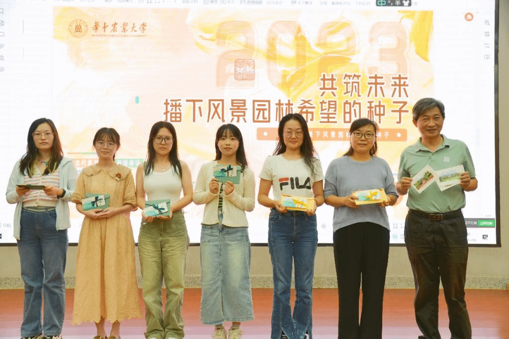 活动最后一个特别环节是“播下希望的种子”,每个学科团队的导师和学生互赠礼物。一张步入华农景园的“种子”门票与一封写给三年后自己的信在师生手中交换,开始了导师与学生之间的共同期待与希望。