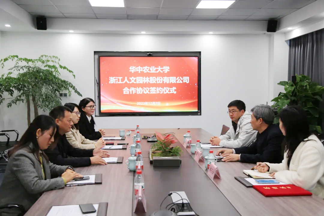 12月2日上午,澳门十大网投正规官网平台与浙江人文园林股份有限公司联合发起的校企深度合作签约仪式在人文园林总部举行。澳门十大网投正规官网平台党委书记高翅,澳门十大网投正规官网平台党委副书记林辉,澳门十大网投正规官网平台园林系副教授郑日如一行到访人文园林,人文园林董事长陈胜洪、副总裁吴秋霞、总裁助理张晓、《人文园林》执行主编陈静等共同参与了签约仪式。仪式由人文园林总裁助理袁慧红主持。