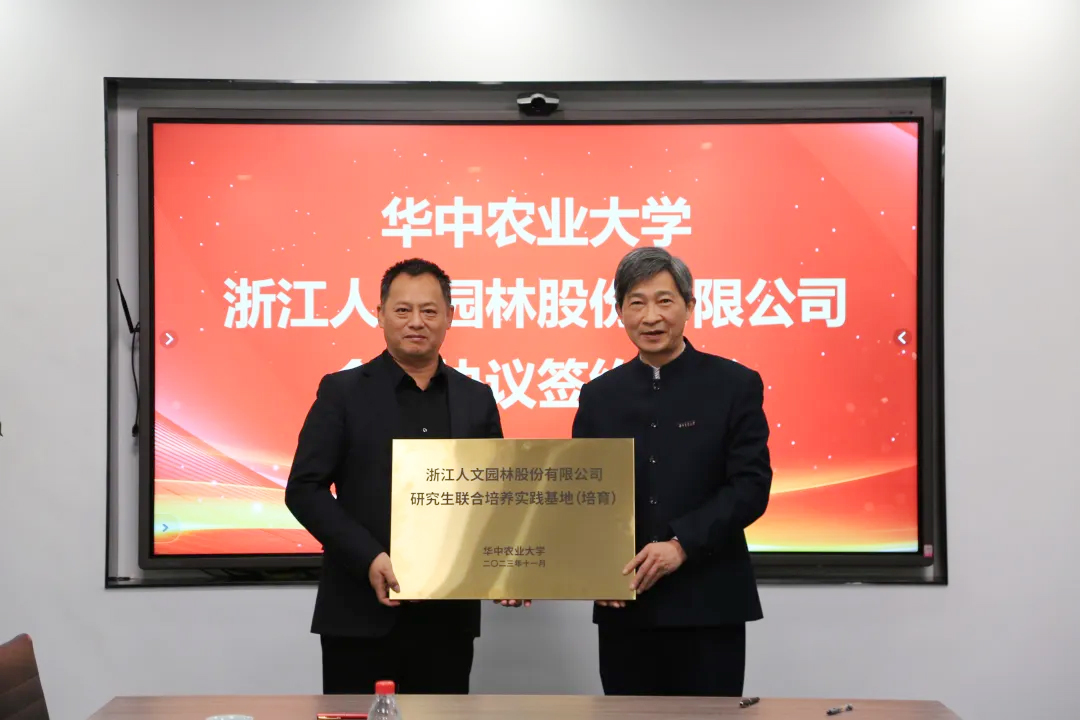 学校党委书记高翅为浙江人文园林股份有限公司颁发研究生联合培养基地挂牌