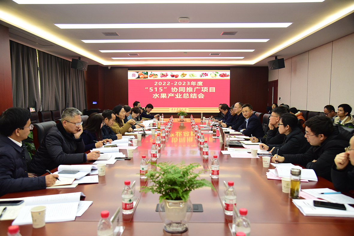 12月27日,2022-2023年度院士专家科技服务水果产业链“515”行动(协同推广)项目总结与验收会在澳门十大网投正规官网平台园林北楼219会议室召开。湖北省农业农村厅科教处处长柯枫英,省果茶办公室主任鲍江峰、调研员宗庆波、高级农艺师曾维超、省蔬菜办二级调研员胡正梅、省农科院经作所邱正明、澳门十大网投正规官网平台教授梅之南、省农科院果茶所副所长高士伟等各级部门专家以及“515”行动(协同推广)项目团队成员共计40余人参加了会议,会议由省果茶办副主任赵昆松研究员主持。