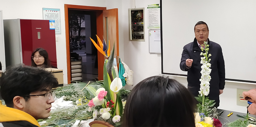 周继荣副院长在插花教室与同学们交流“生活与艺术”