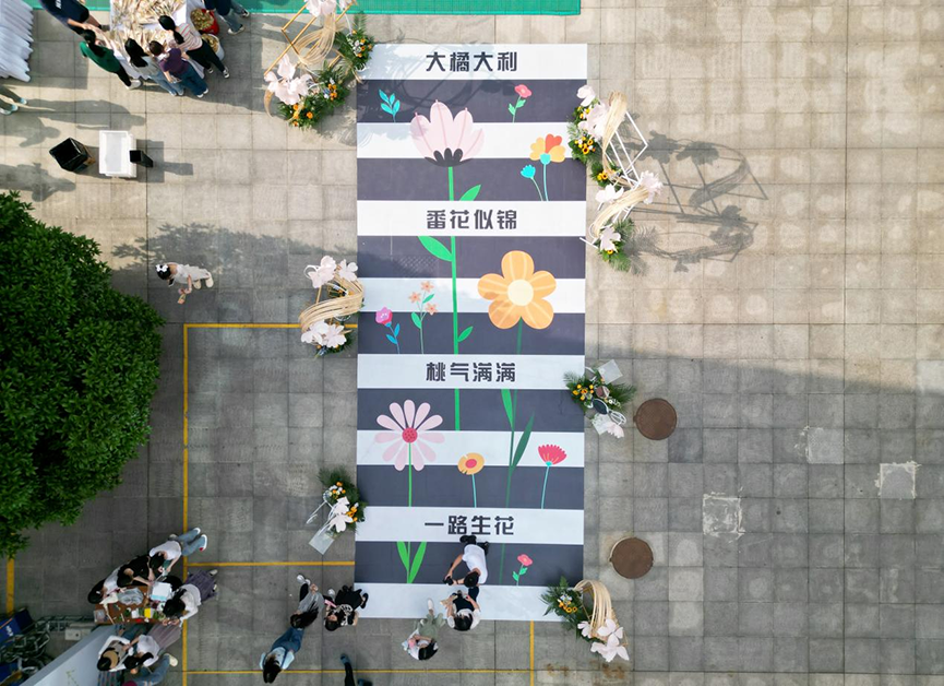 活动伊始,一条由鲜花和竹编装置装点的“花路”吸引了众人的目光。“一路生花是最初的设计概念,也是祝福毕业生们从学生走向社会的过程中,如这条路一般’一路生花’,繁花灿灿”,花路负责人2023级园林系研究生田嫚谈到,这已经是她们第二年用专业所学为师兄师姐送上祝福。今年的花路以“镜”以“框”来作主要元素,“以景自照”“不拘泥于框架”再加上“樱花”“向日葵”等繁花,以竹篾串联,为学生时代献上最后的花礼。在这条花路上,学弟学妹们手持花束,或是轻声细语地送上祝福语,或是挥动花束,为毕业生们勇往直前而加油鼓劲。毕业生们脸上洋溢着幸福的笑容,纷纷停下脚步合影留念,共同记录下这一难忘的时刻。