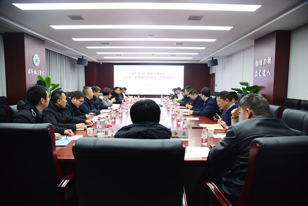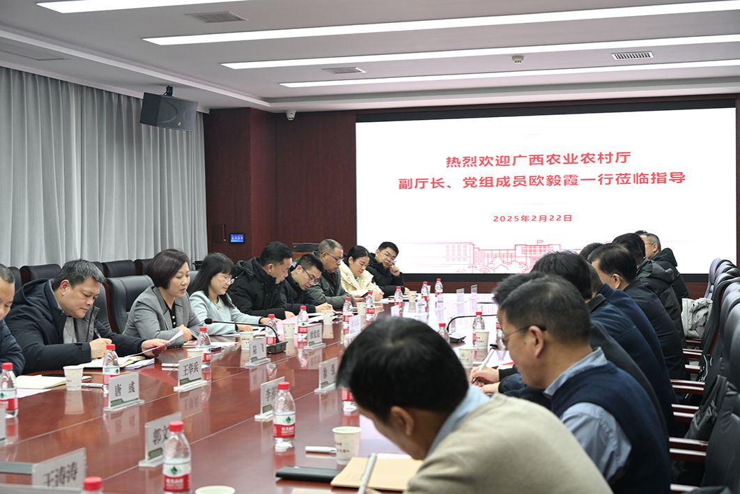 2月22日下午,广西农业农村厅副厅长、党组成员、人事处处长欧毅霞一行来院调研,校党委副书记、副校长姚江林、学院党委书记龙健飞、院长程运江热情接待了欧毅霞一行并举行座谈交流。座谈会由龙健飞主持。