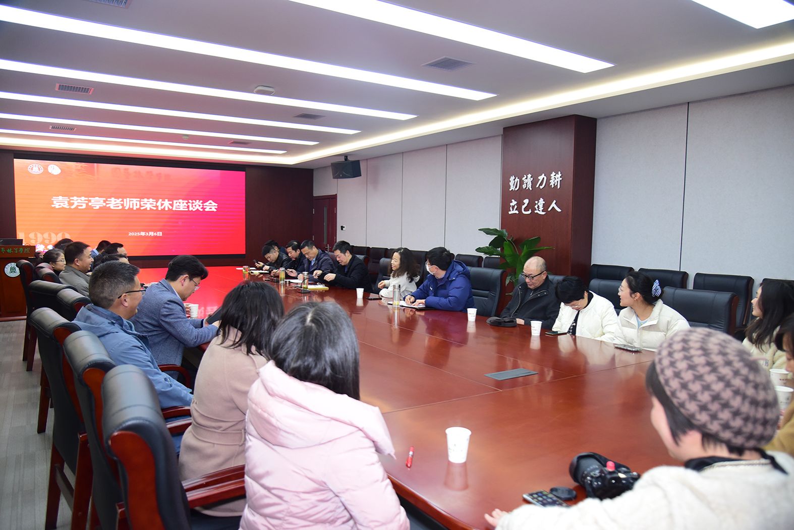 座谈会伊始,一段26分钟的视频带领大家走进袁芳亭老师的教育人生。视频从她初入学院的青涩岁月,到躬耕实验教学、实验室的日常管理、运动场上的矫健身影的点滴片段,再到与学生、同事并肩奋斗的温暖场景,生动展现了袁老师以严谨治学、诲人不倦的精神为学院发展和人才培养作出的卓越贡献。学生们的祝福寄语与同事们的真挚感言,令现场充满感动与敬意。