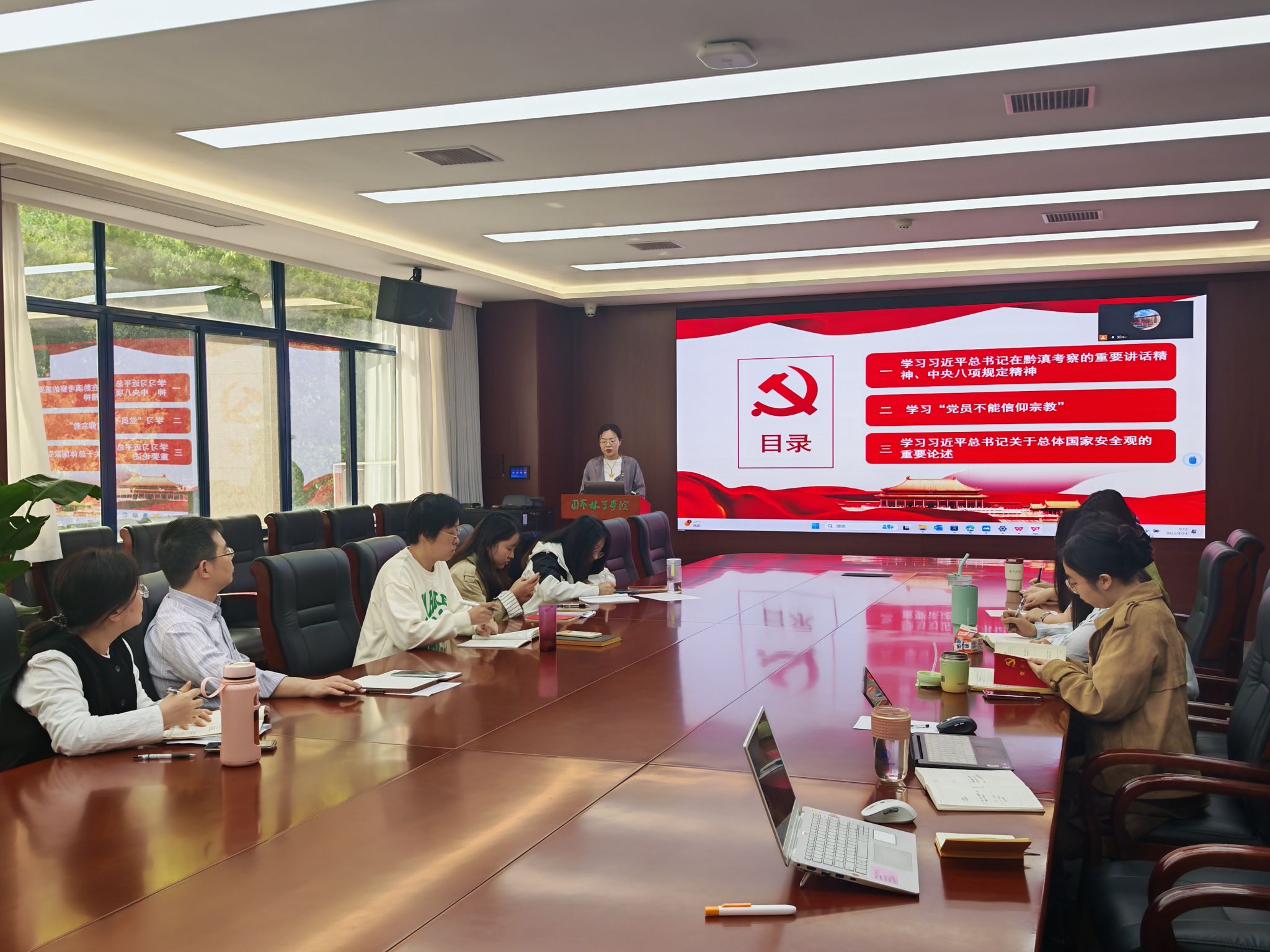 4月14日上午,学院行政教工党支部在园林北楼219会议室集中学习。支部成员郭艺佳领学了习近平总书记在黔滇考察时的重要讲话精神、《中央八项规定精神》、《党员不能信仰宗教》与《习近平总书记关于总体国家安全观的重要论述》等重要内容。