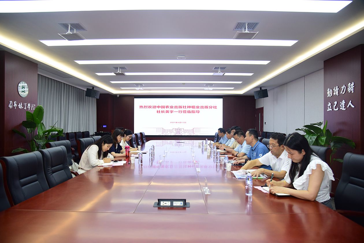 黄宇对学院的热情接待表示感谢,并介绍了此次调研的目的。他表示,中国农业出版社始终以服务“三农”为核心,在种植业领域积累了丰富的出版经验与读者基础。此次到访旨在深入了解学院的科研需求与成果特色,探索更精准的出版合作模式,助力科研成果从“实验室”走向“生产一线”。他强调,出版社将重点关注学院在种质创新、智慧农业等方向的研究进展,针对性设计出版方案,推动科技成果以专著、科普读物等形式落地,为农业生产和学术交流提供支撑。
