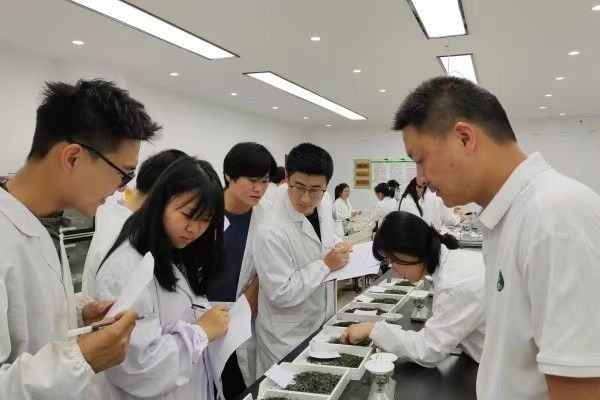 5 月 20 日,茶叶加工技能大赛的茶样审评活动有序开展。专业评审老师余志老师、张德老师、王明乐老师与同学们齐聚审评现场,共同对竞赛产出的茶样进行细致品鉴。观汤色,清澈透亮或浓郁醇厚各有千秋;闻香气,清香、嫩香、栗香等不同香型沁人心脾;品滋味,鲜爽回甘或醇厚饱满各具特色;看叶底,柔软匀整或黄绿明亮尽显茶叶品质。在审评过程中,老师们结合丰富的经验,为同学们进行悉心指导,分享审评要点和技巧,帮助同学们进一步提升茶叶品质鉴别的能力,深化对茶叶品质形成规律的理解。经过激烈的角逐,评委们从茶叶的外形、香气、滋味、汤色等多个维度进行综合评审,最终评选出各赛道的一、二、三等奖,为这场技艺比拼画上圆满句点。
