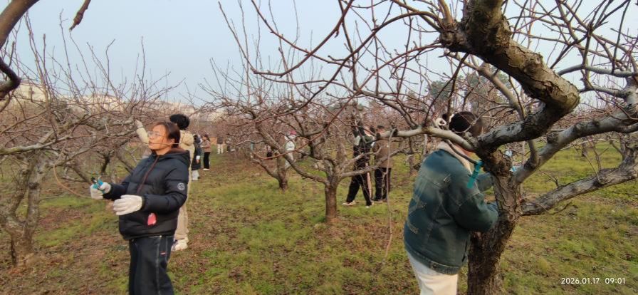为期10天的2025果树冬季修剪实习已然落幕。今年是难得的暖冬,同学们“日出而作,日入而息”,在认真完成修剪任务的同时,坚持总结当天的收获与感悟并撰写实习心得,用镜头捕捉下每一刻与自然的精彩互动。十天时间,同学们不仅以手中的工具奏响了果园里的“修剪交响曲”,更用青春的热情与创意,为这段扎实而丰富的实践篇章注入了无限活力与温情。从技艺切磋到感悟分享,从日出而作到日入而息,一棵棵果树的枝桠在被精心打理的同时,一颗颗深耕农业的匠心也在实践中悄然萌发、茁壮。愿这份从土地中生长出来的收获,能陪伴同学们在未来的道路上,勇敢修剪出自己的成长轨迹,结出丰硕的人生果实。