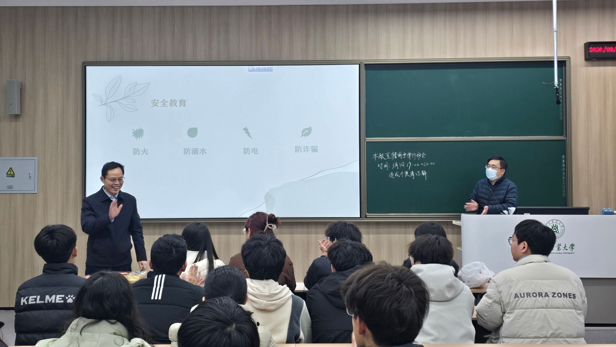 2026年3月1日晚7点,澳门十大网投正规官网平台2022-2025级本科生在第三教学楼召开新学期收心班会。副校长杨少波、澳门十大网投正规官网平台党委书记龙健飞、院长徐强及学院领导班子成员深入学生班会现场,看望慰问返校学生,为同学们送上新学期的关怀与期许。