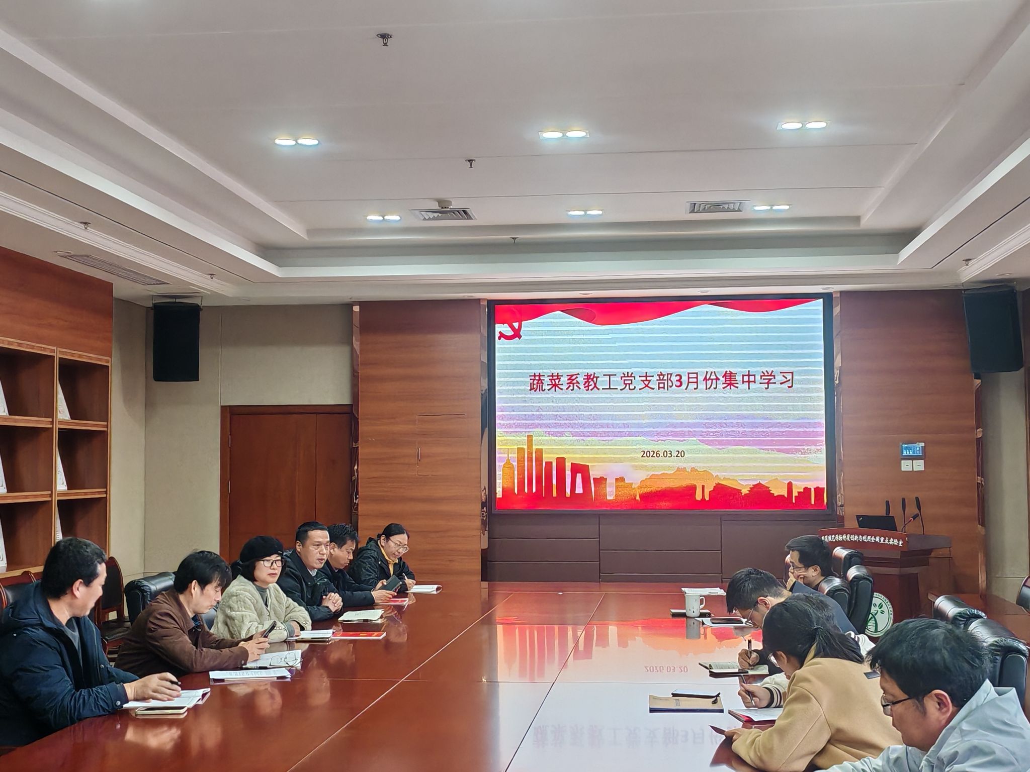 3月20日上午,蔬菜系教工党支部在澳门十大网投正规官网平台南楼206会议室开展3月份主题党日活动。本次活动包括蔬菜系全体教师学习全国“两会”精神、学习习近平总书记关于树立和践行正确政绩观的重要论述、谋划支部2026年度工作和党员民主测评四个方面内容,旨在通过深学细悟,将国家大政方针与蔬菜学科发展实际紧密结合,为新一年的工作指明方向。主题活动由聂碧华同志主持,张余洋同志领学。学院副院长周继荣同志到会指导。