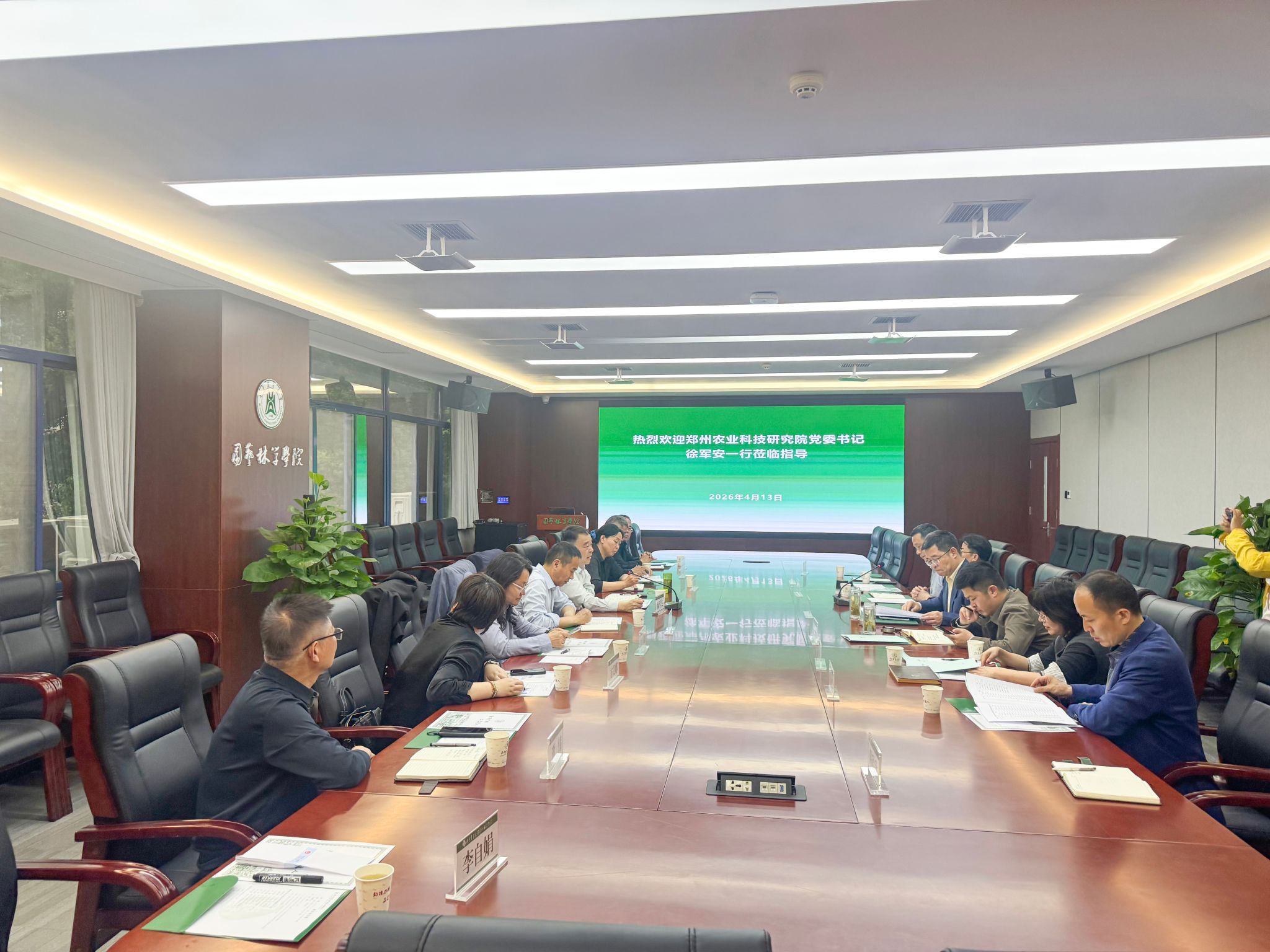 4月13日下午,郑州市农业科技研究院党委书记、院长徐军安一行来院调研交流,主要围绕蔬菜生物育种技术创新、产学研深度合作等议题开展座谈交流。学院党委书记龙健飞、副院长周继荣、果蔬园艺作物种质创新与利用全国重点实验室副主任卢刚及相关学科带头人出席座谈,会议由周继荣主持。