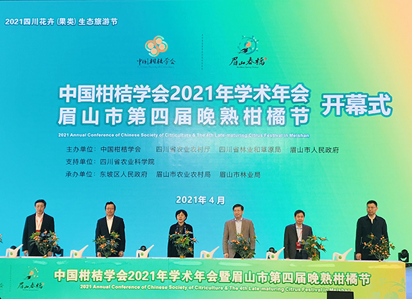 2021年4月11日-13日,中国柑桔学会2021年学术年会暨眉山市第四届晚熟柑橘节在四川省眉山市顺利举办。本次会议由中国柑桔学会、四川省农业农村厅、四川省林业和草原局、眉山市人民政府主办,四川省农业科学院支持,眉山市东坡区人民政府、丹棱县人民政府、青神县人民政府、眉山市农业农村局、眉山市林业局承办,江西绿萌科技控股有限公司协办。国家农业农村部、地方政府有关部门领导,中国柑桔学会理事、学会会员,以及来自全国各地从事柑橘科研、教学、生产、加工、营销等企事业单位代表和提交论文的在读研究生共计800余人参加了本次会议。
