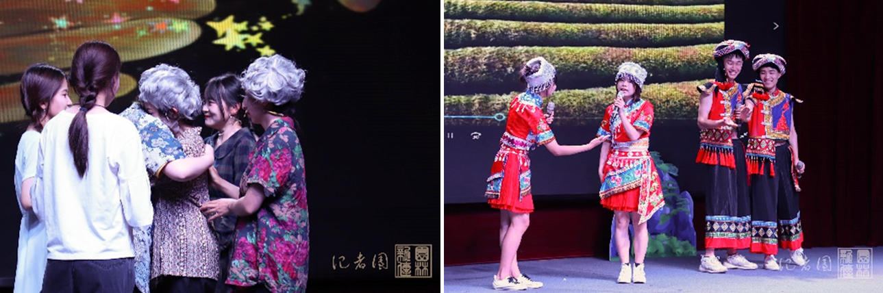 “我想念长安,那是故国的血源,汉唐的烽烟。”郭湉、张泓等带来的《明月何曾是两乡》选取了《乡愁》和《眼前即是如画的江山》的片段,以诗朗诵和情景剧的形式讲述了因时局动荡流离台湾的思乡青年终于在耄耋之年与家人团聚的故事。歌舞剧《寻茶》以卢仝的七碗茶歌为引,展示了别具民族特色的茶歌;情景剧《村茶记》讲述了茶学毕业生回乡推广有机茶的趣事,表明了茶学人的责任与担当。民乐团和武术社嘉宾分别带来《苏堤春晓》和《狮山论武》两个节目,一文一武,一柔一刚,精妙绝伦,引来阵阵掌声。